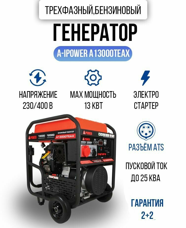 Генератор бензиновый трехфазный A- IPOWER A13000TEAX 13 кВт, 190кг
