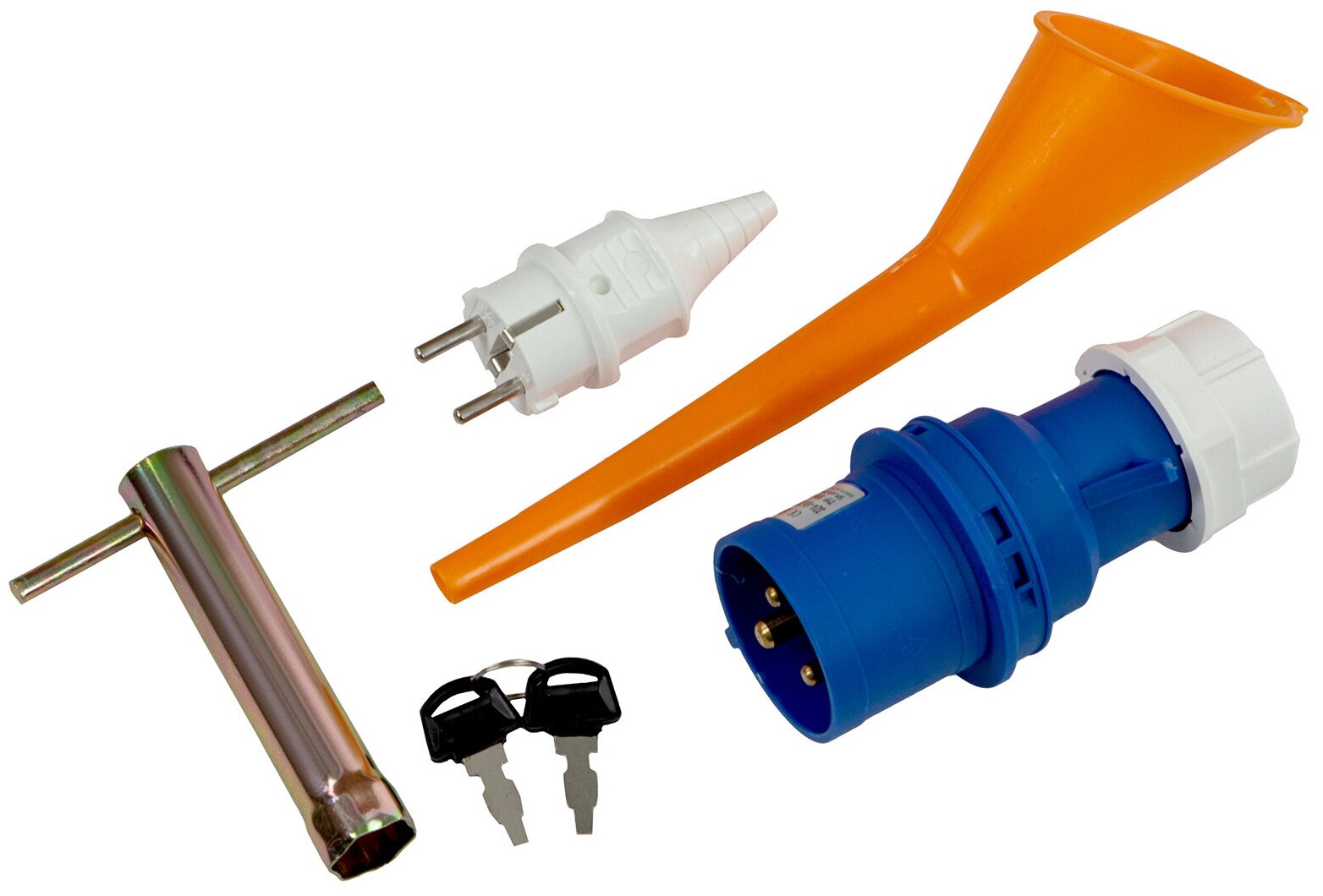 | Дополнительная информация | генератор - 1 шт; Ключ свечной - 1 шт; Ключ зажигания - 2 шт; Вилка 230В/16А - 2 шт; Вилка 230В/32А - 1 шт; Руководство по эксплуатации с гарантийным талоном - 1 шт |