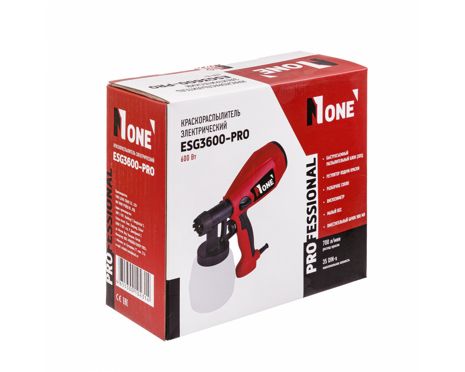 Краскопульт сетевой Number one ESG3600-PRO (600Вт, 800мл, быстросъемный блок)