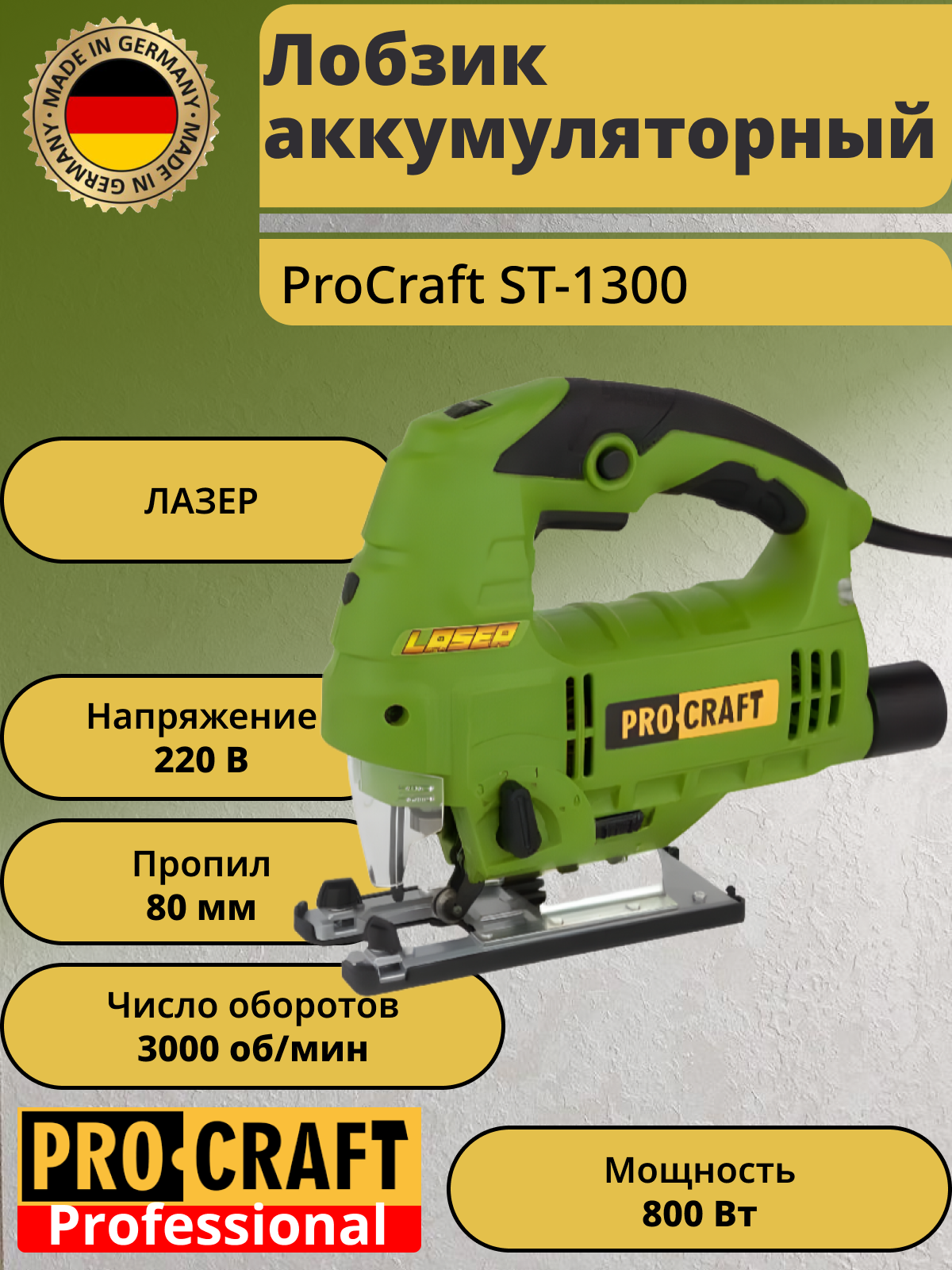 Лобзик электрический Procraft ST1300, лазер, 80мм, 3000об/мин