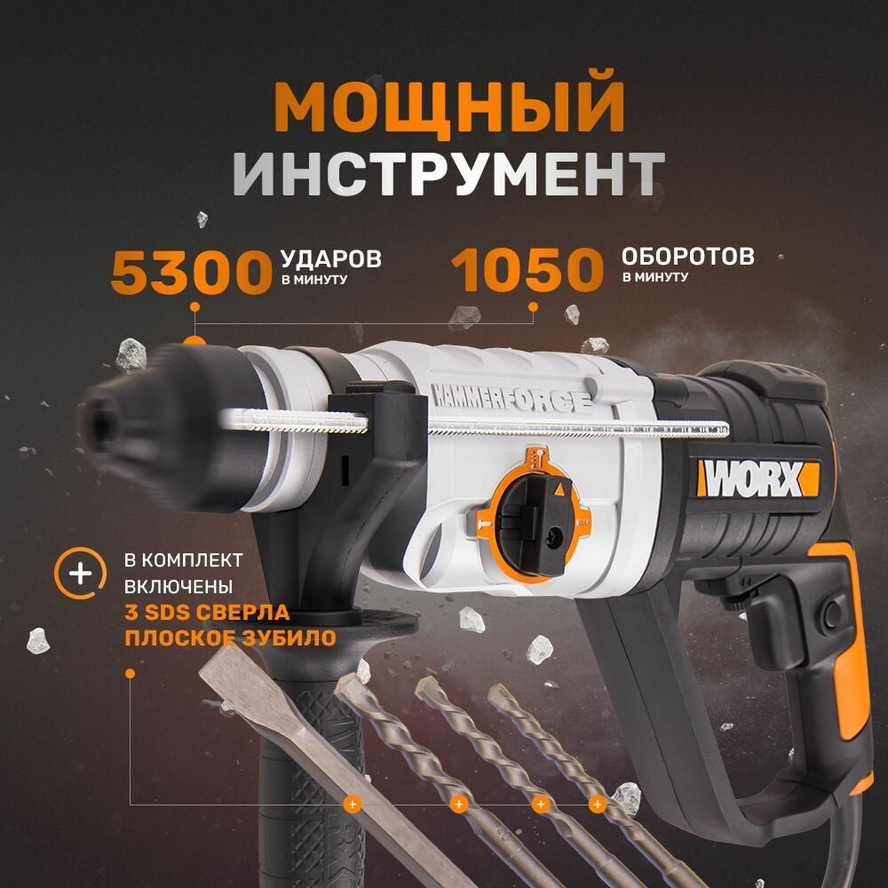 перфоратор WORX WX339 800Вт 3 режима 2Дж