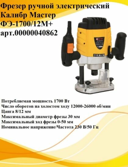 Фрезер ручной электрический Калибр Мастер ФЭ-1700/12М+