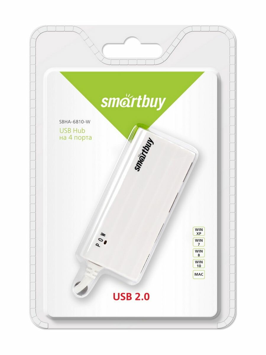 Купить USB 2.0 Хаб Smartbuy 6810, 4 порта, белый (SBHA-6810-W)