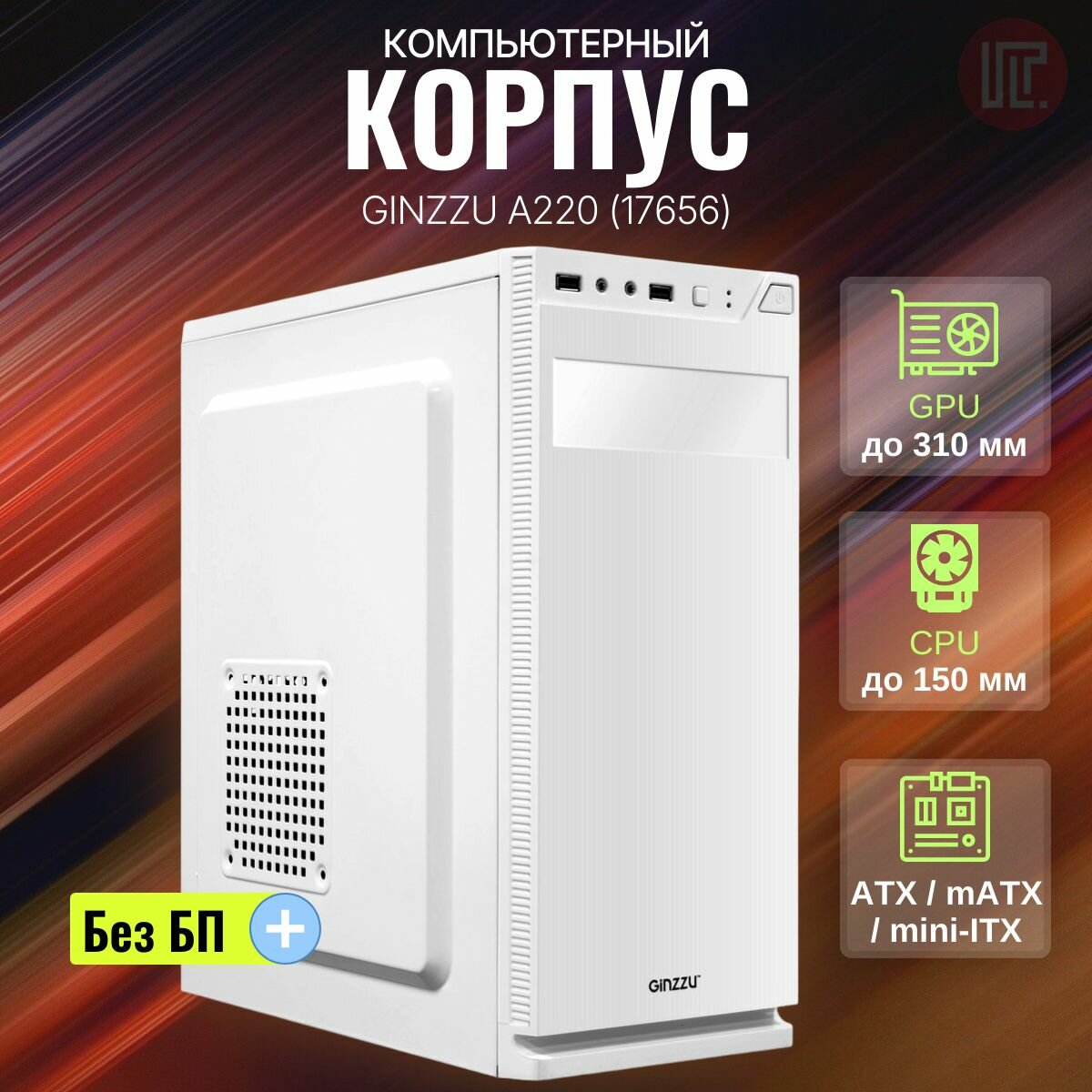 Корпус Ginzzu A220 ATX, Midi-Tower, без БП белый