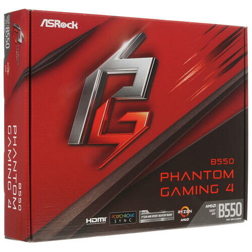 Материнская плата ASRock B550 PHANTOM GAMING 4 Socket AM4 AMD B550 4xDDR4 2xPCI-E 16x 2xPCI-E 1x 6xSATA III ATX Retail