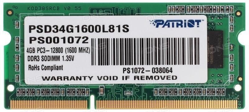 Patriot DDR3 SODIMM 4GB PSD34G1600L81S (PC3-12800, 1600MHz, 1.35V)