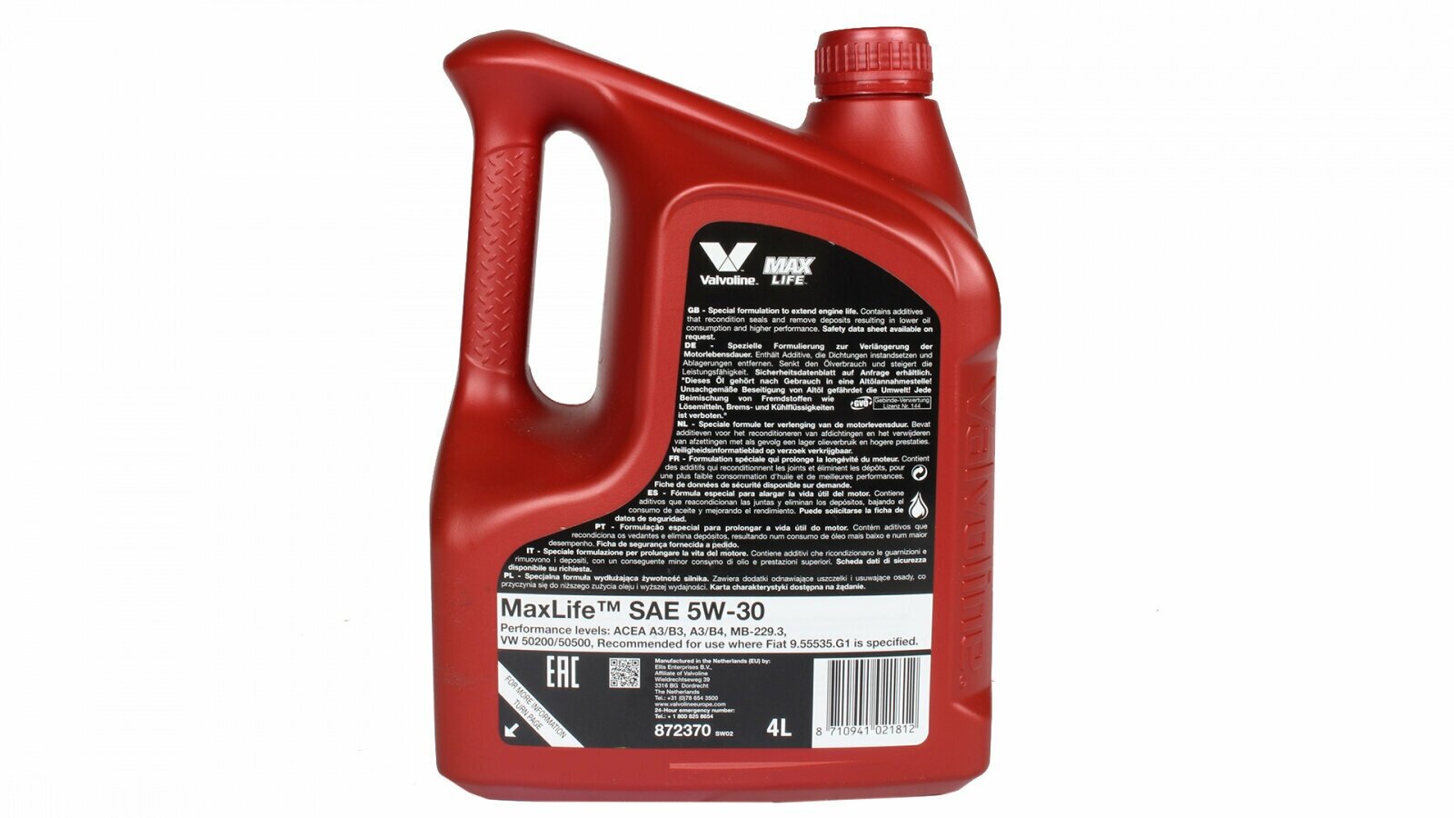 VALVOLINE 872370 моторное масло VALVOLINE MAXLIFE SAE 5W-30 4Л