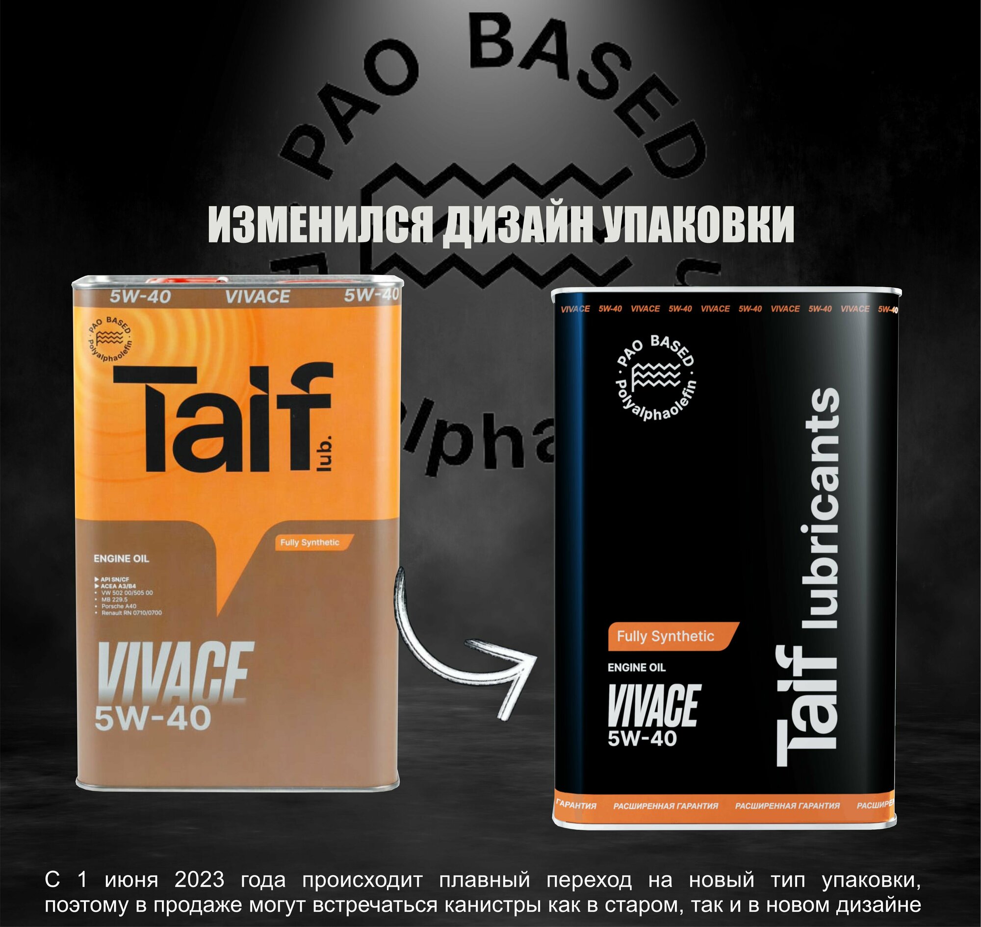 Моторное масло TAIF VIVACE 5W-40 Синтетическое, ПАО, A3/B4, SN/CF, 1 л