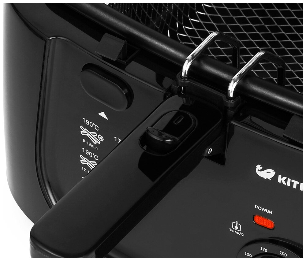 Kitfort KT-2018 имеет удачный дизайн и эргономику и гармонично впишется в интерьер любой кухни, у решетчатой погружной корзины складывается ручка (что отсутствует у многих моделей), это позволяет хранить корзину внутри фритюрницы в нерабочем положении. Органы управления размещены удобно и интуитивно понятно их назначение, хотя на них и имеется необходимое обозначение.