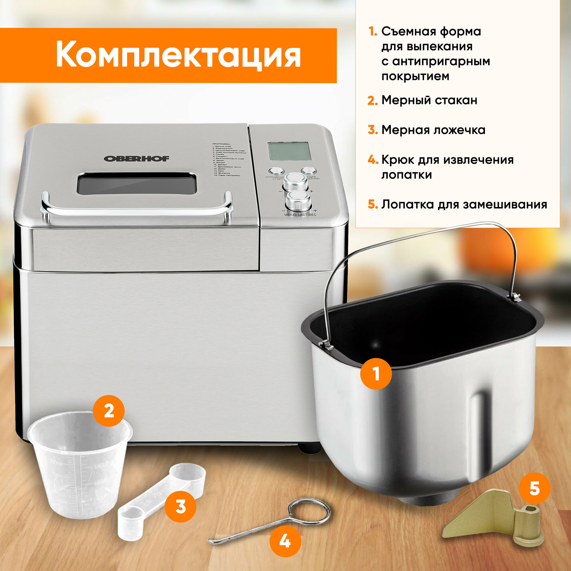 Хлебопечка с замесом теста OBERHOF Broter F4 /Нержавеющая сталь. 15 автоматических программ интересное: