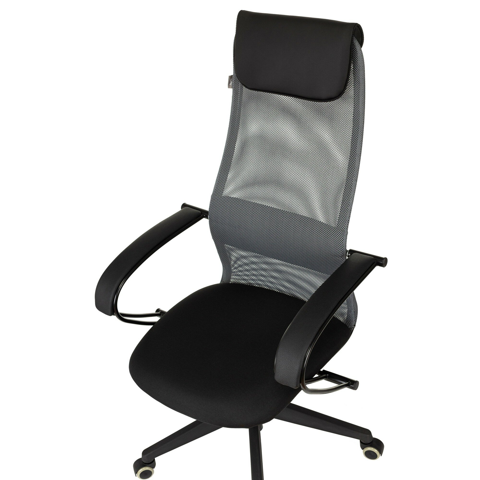 Кресло руководителя CH-607 светло-серый/черный сетка/ткань с подголов. крестов. пластик / Компьютерное кресло для директора, начальника, менеджера