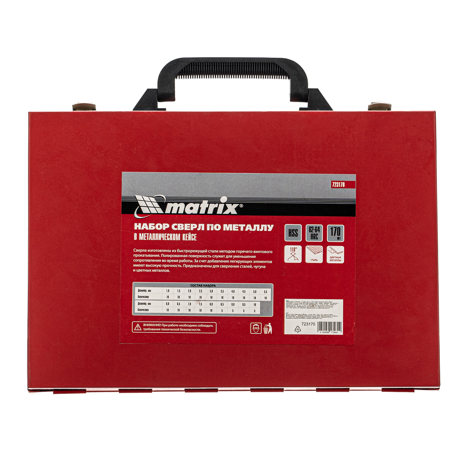 MATRIX Набор сверл по металлу, 1-10 мм, 170 шт, HSS, в металлическом кейсе 723170