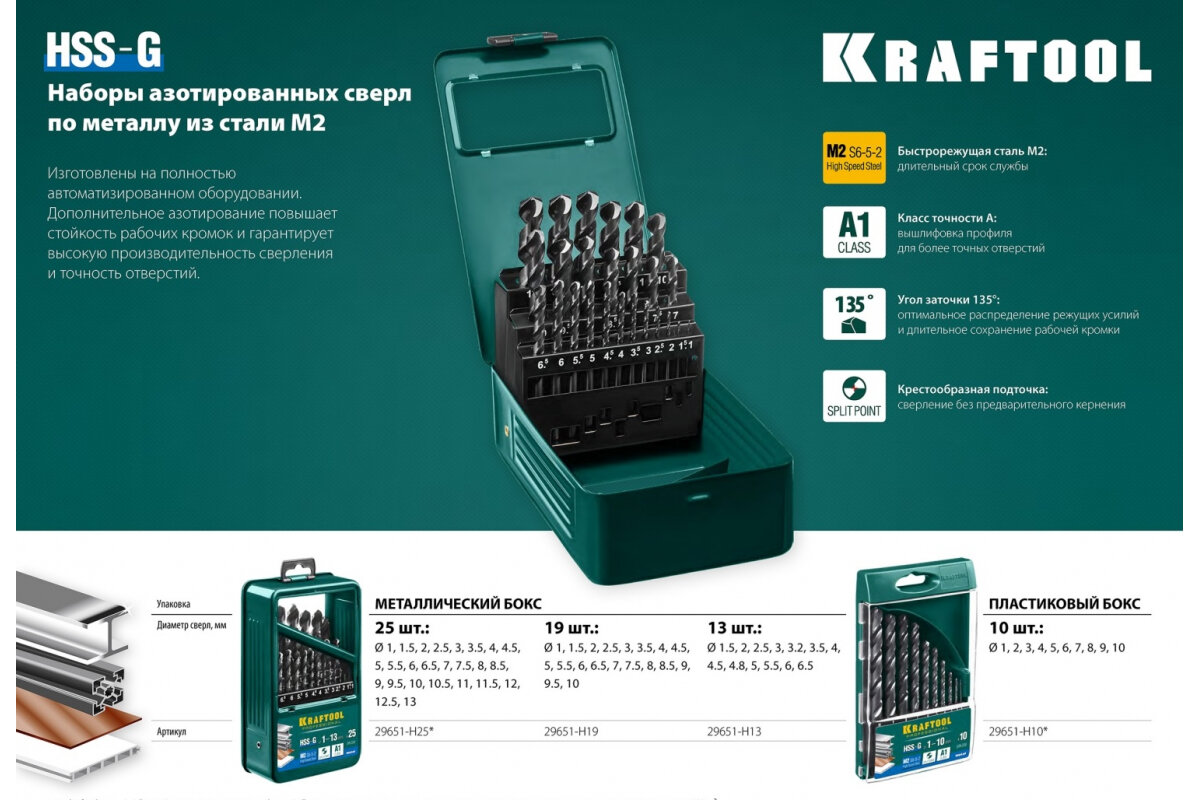 Ниже Вы можете прочитать отзывы на KRAFTOOL COBALT 25шт(1-13мм), Набор сверл по металлу HSS-Co(8проц.), сталь М42(S2-10-1-8), (29656-H25), ознакомится с подробными характеристиками, посмотреть интересные обзоры и фотографии на KRAFTOOL COBALT 25шт(1-13мм), Набор сверл по металлу HSS-Co(8проц.), сталь М42(S2-10-1-8), (29656-H25).