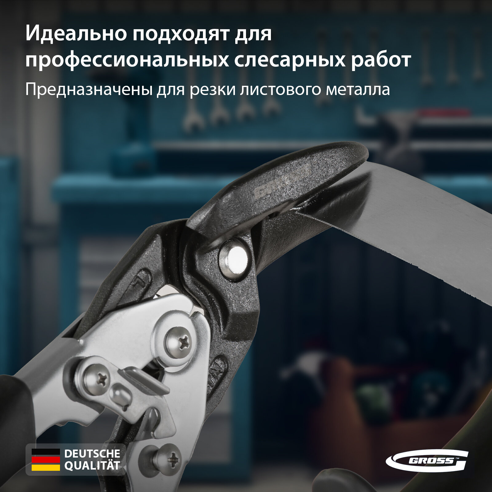 Ножницы по металлу GROSS 78349 усиленные 255мм прямой и левый резсталь-СrMo двухкомп.рукоятки