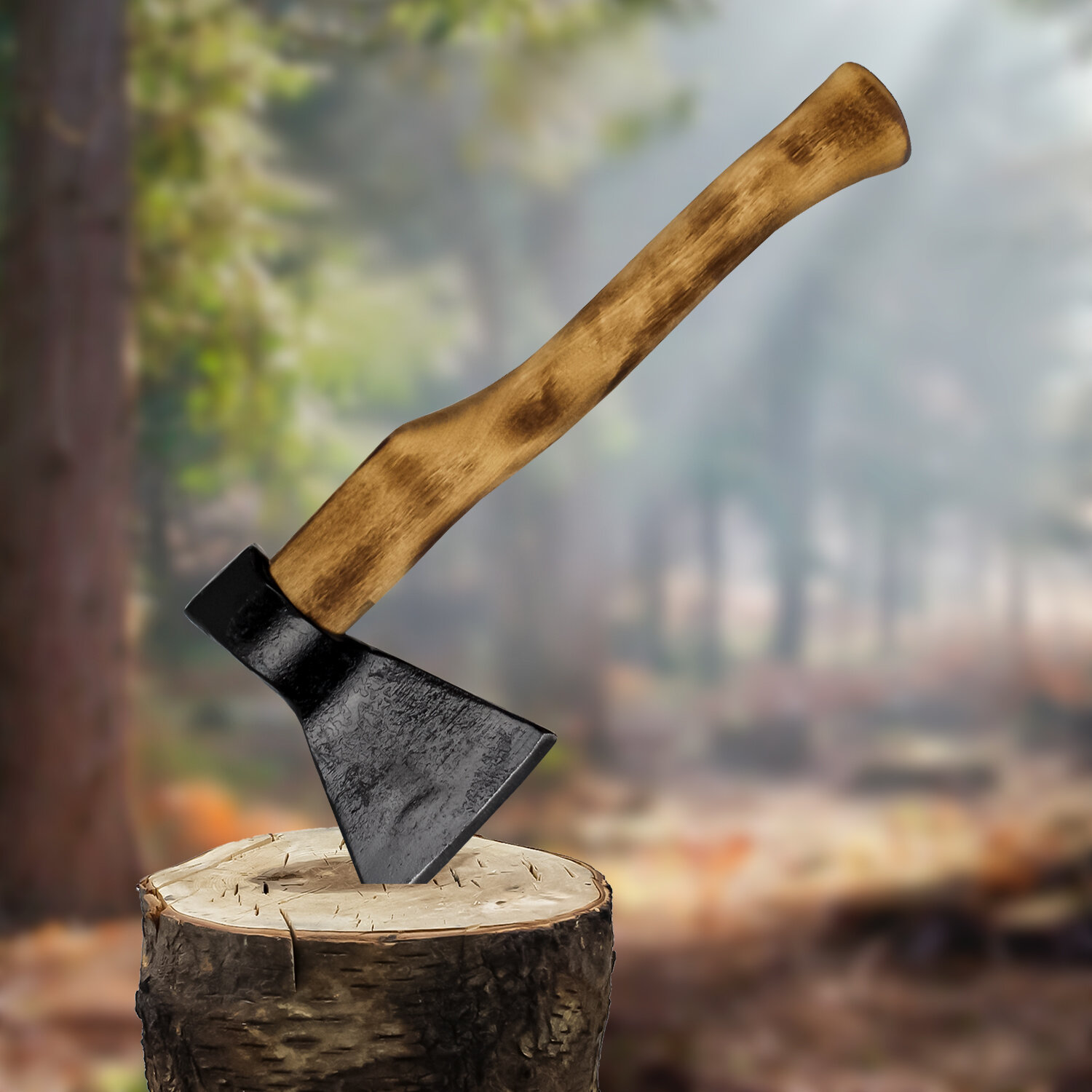 Топор кованый с деревянной рукояткой "Black Axe"/ ТопАр 0,8 кг/Топорище термообработанное из березы/дерево/с порошковым покрытием/в сборе Б2