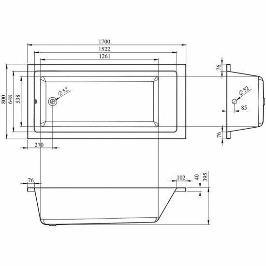 Ванна акриловая 170х80 Lavinia Boho Element 37090080: прямоугольная ванна из литьевого акрила с усиленным армированным корпусом, размер 170 х 80 см