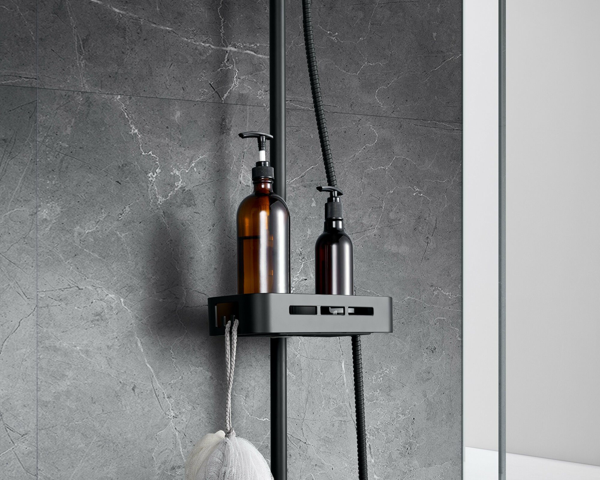 | Дополнительная информация | регулируемая по высоте полочка, съемная; душевой шланг стальной, оплетка с двойным загибом; трехпозиционный картриджный переключатель (угол поворота - 360⁰) |