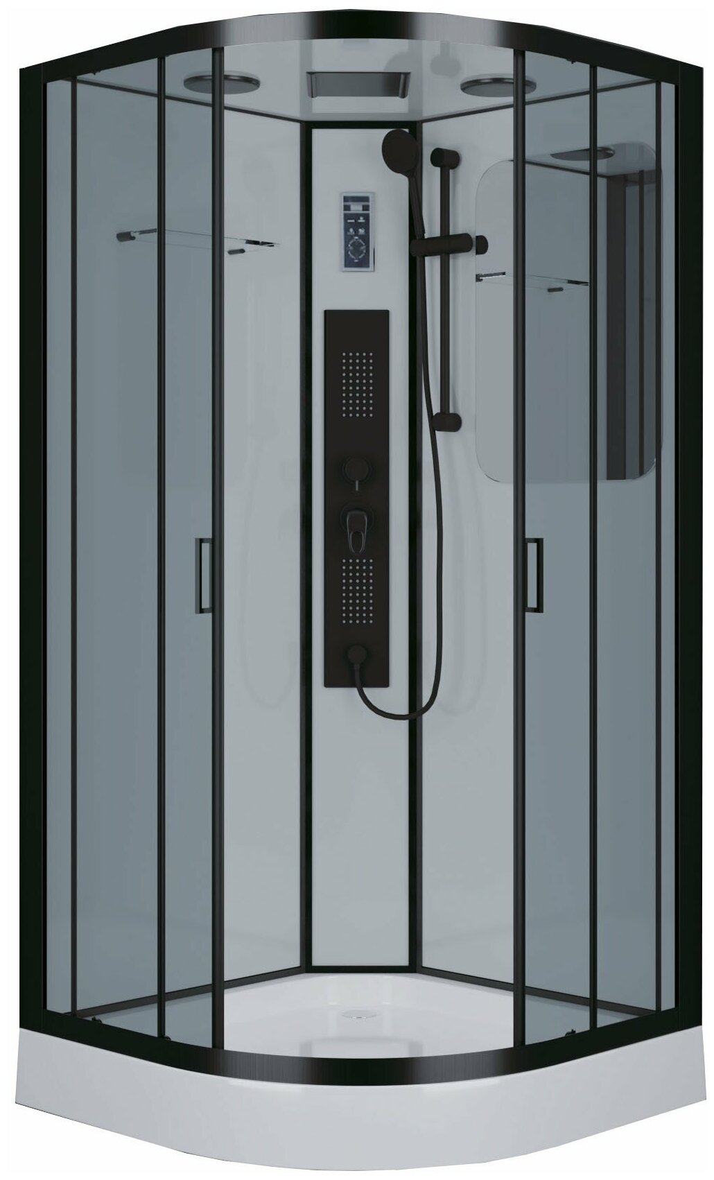 | Дополнительная информация | функции: распыление, массаж, брызги шампанского, эко-режим, пауза; высота стойки для душа: 1024 мм; диаметр душевой лейки: 85 мм; диаметр верхнего душа: 200 мм |