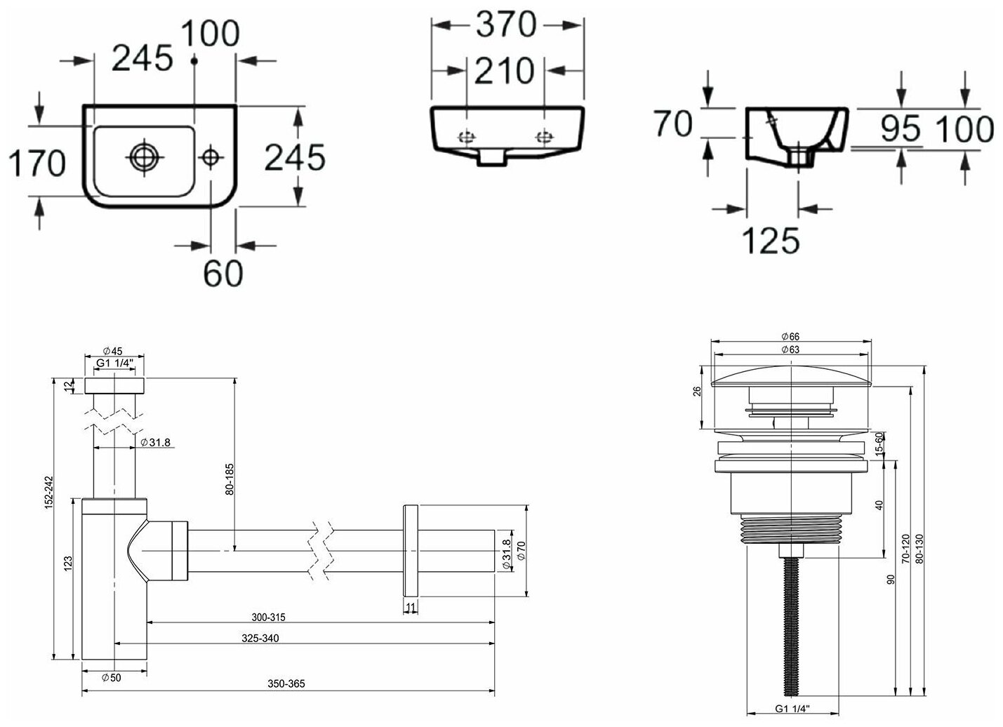 Мини-раковина Lavinia Boho One 21520749 в комплекте 3 в 1: подвесная раковина, донный клапан и сифон хром. Отверстие под смеситель справа