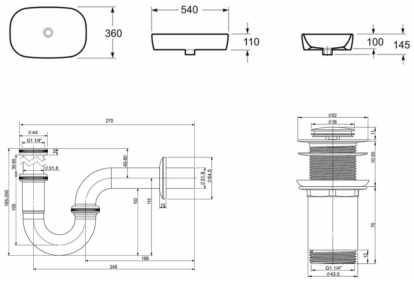 Накладная раковина в ванную Lavinia Boho Bathroom Sink 21520001 в комплекте 3 в 1: умывальник белый, донный клапан и сифон в цвете хром интересное: