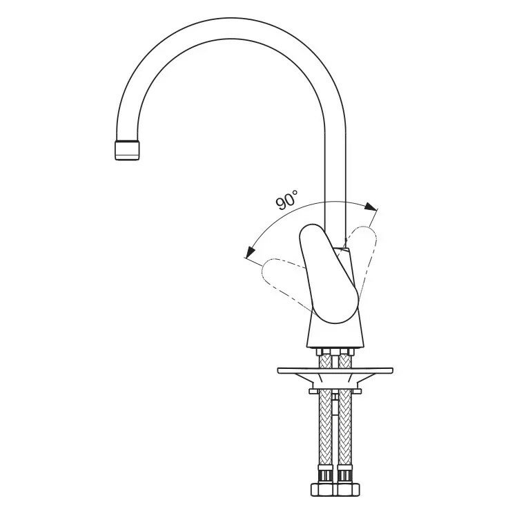 | Плюсы: | Недорогой однорычажный смеситель, легкая установка, в комплекте две гибкие подводки 50 см длиной. |