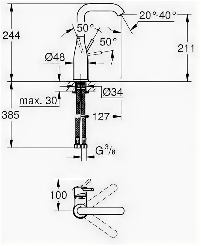 | Высота излива | 211 мм |