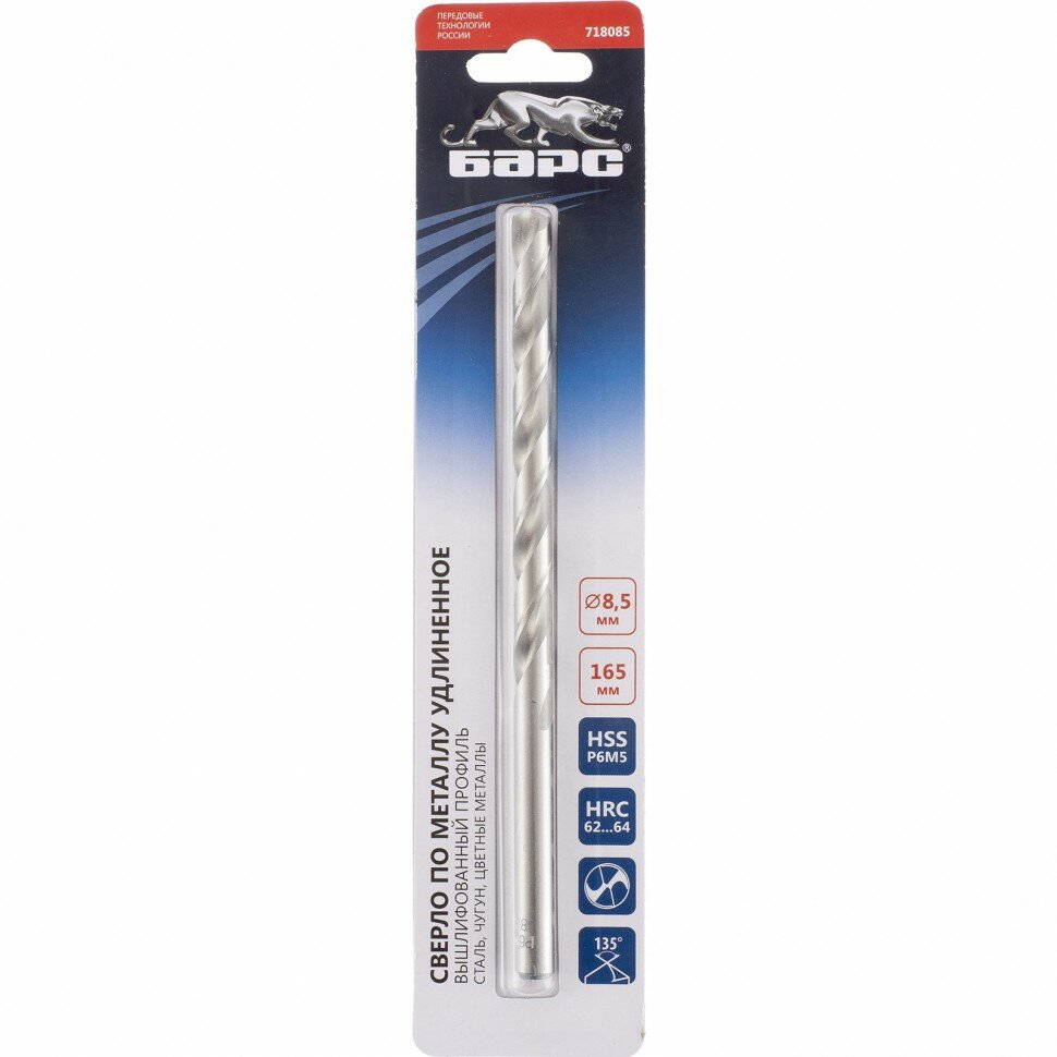 Сверло по металлу 8.5х165мм Р6М5 удлиненное барс 718085