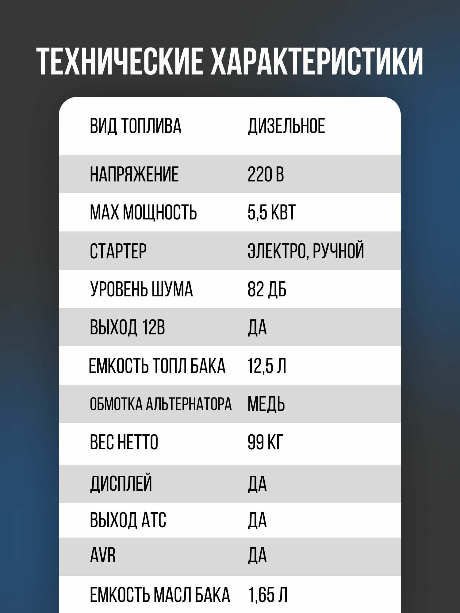 | Полная мощность | 5500 ВА |