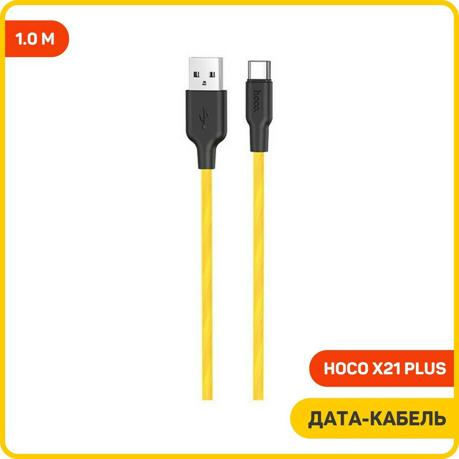 Кабель Hoco X21 Plus, USB - USB Type-C, 1 м, 1 шт., желтый