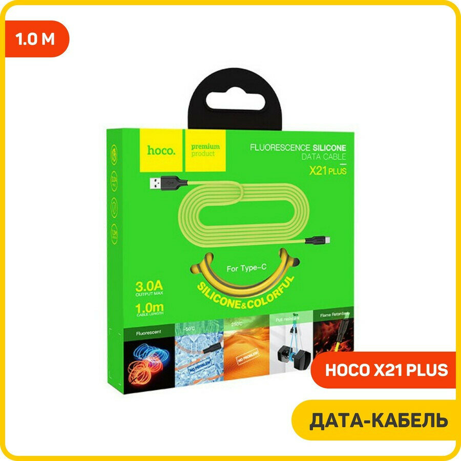 СохранитьДата-кабель Hoco X21 Plus USB-Type-C (высокопрочный / силикон) 1 м, желтый с черным интересное: