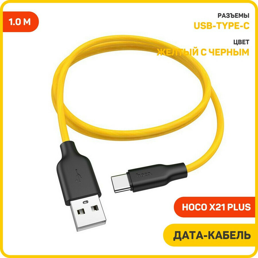 Кабель Hoco X21 Plus USB - Type-C, 1 м, 1 шт., желтый