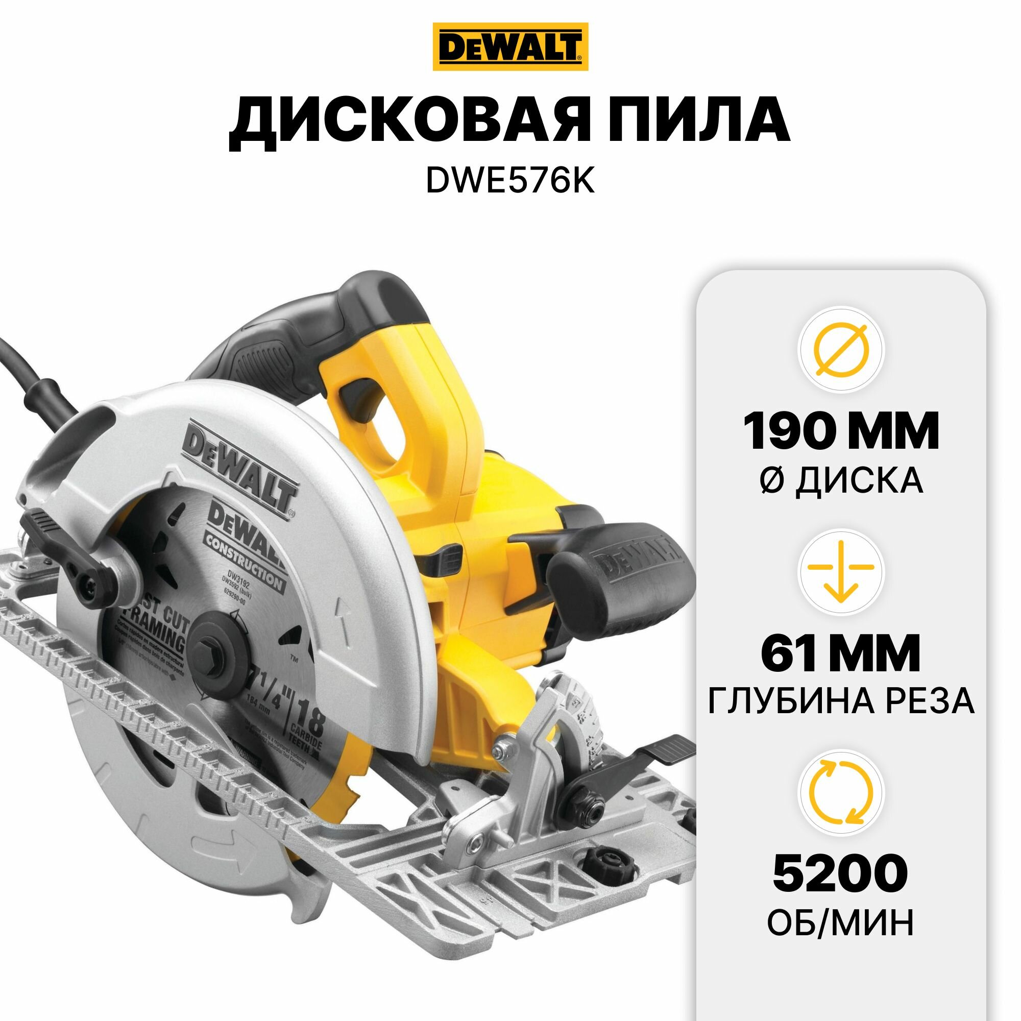 Пила дисковая сетевая Dewalt DWE576K 190/30мм, 1600Вт, 61мм