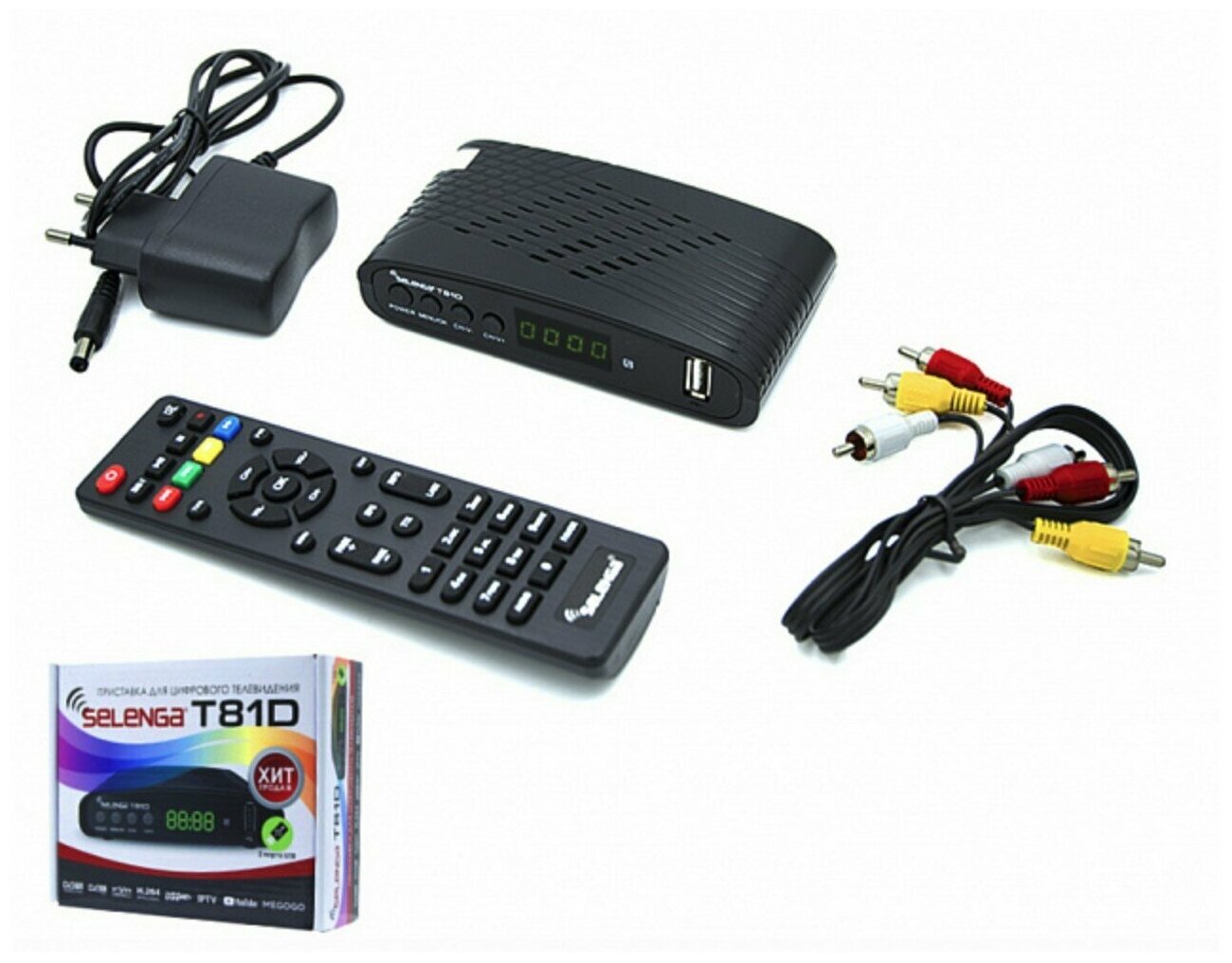 | Комплектация | Приставка T81D; Пульт дистанционного управления; Батарейки ААА; Кабель 3,5 Jack -3RCA; Блок сетевого питания; Руководство пользователя на русском языке; Гарантийный талон |