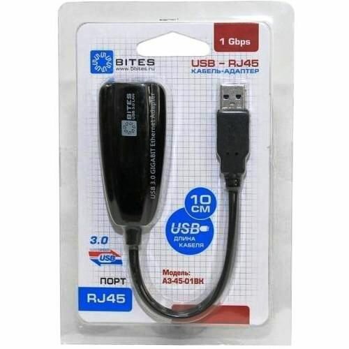 Переходник 5BITES Ua3-45-01bk USB3.0-RJ45 10/100/1000 Мбит/с, 10см, черный