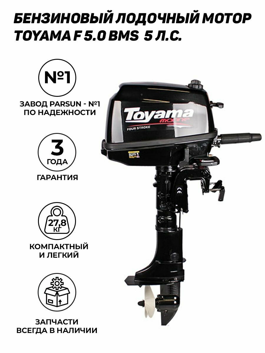 Лодочный мотор Toyama F 5 BMS(завод PARSUN), бензиновый, 4-х тактный, 5 л.с.