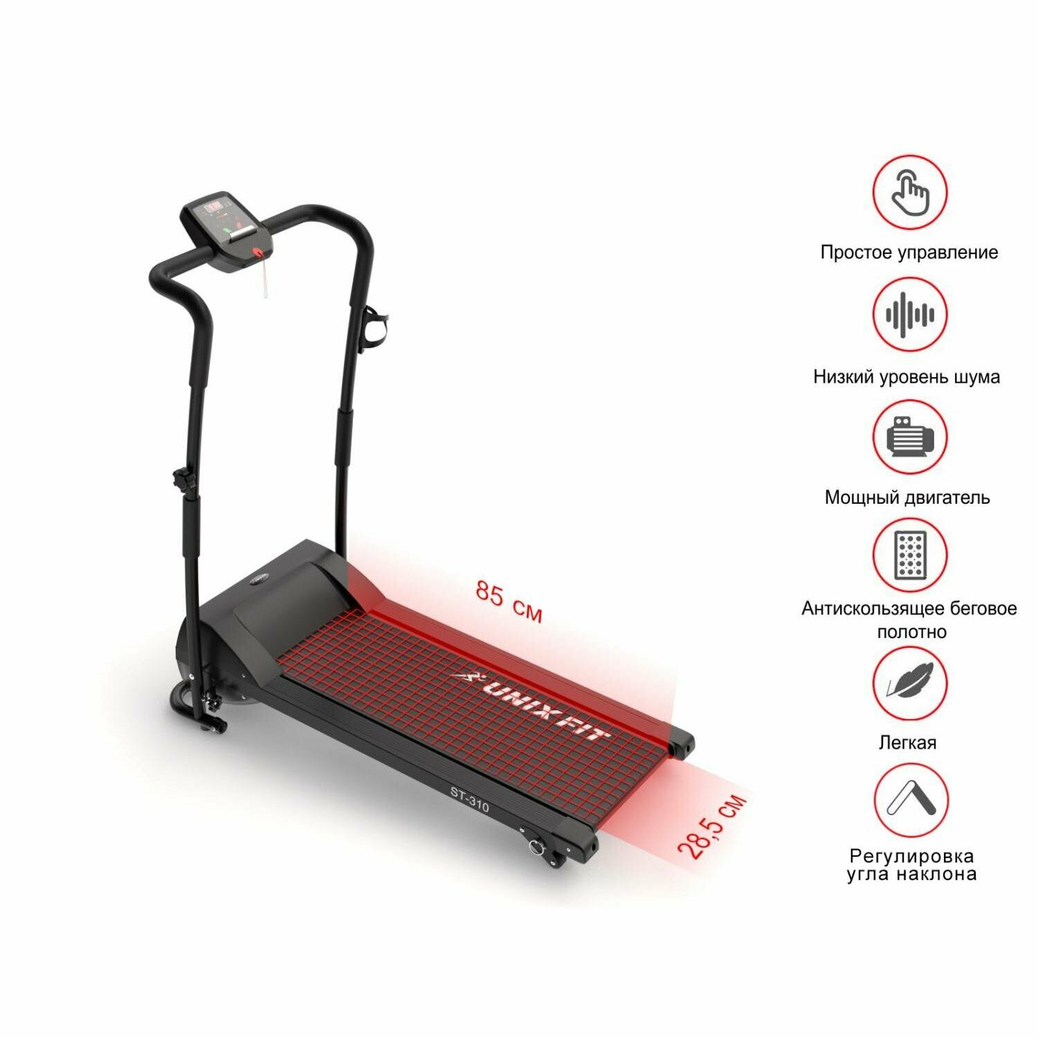Беговая дорожка UNIX Fit ST-310, мощность 1 л.с., полотно 82х28.5, до 80 кг, до 9 км/ч
