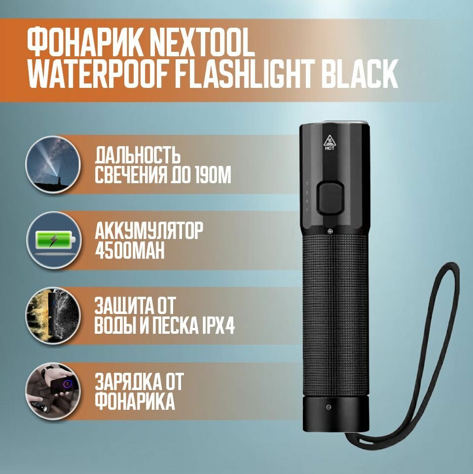 Фонарик Xiaomi NexTool Waterpoof Flashlight NE20069 (черный) интересное: