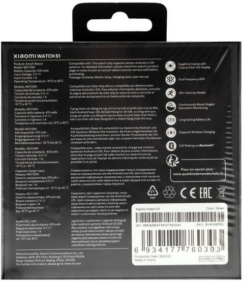 Часы Xiaomi S1 GL (Silver) BHR5560GL