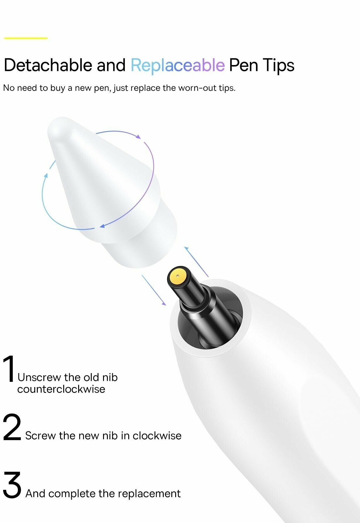 Стилус Baseus Smooth Writing Active Stylus with LED Indicators White (Including: Universal Type-C data cable 3A 0.3m white x 1 + Active tip x 1) (SXBC000202)