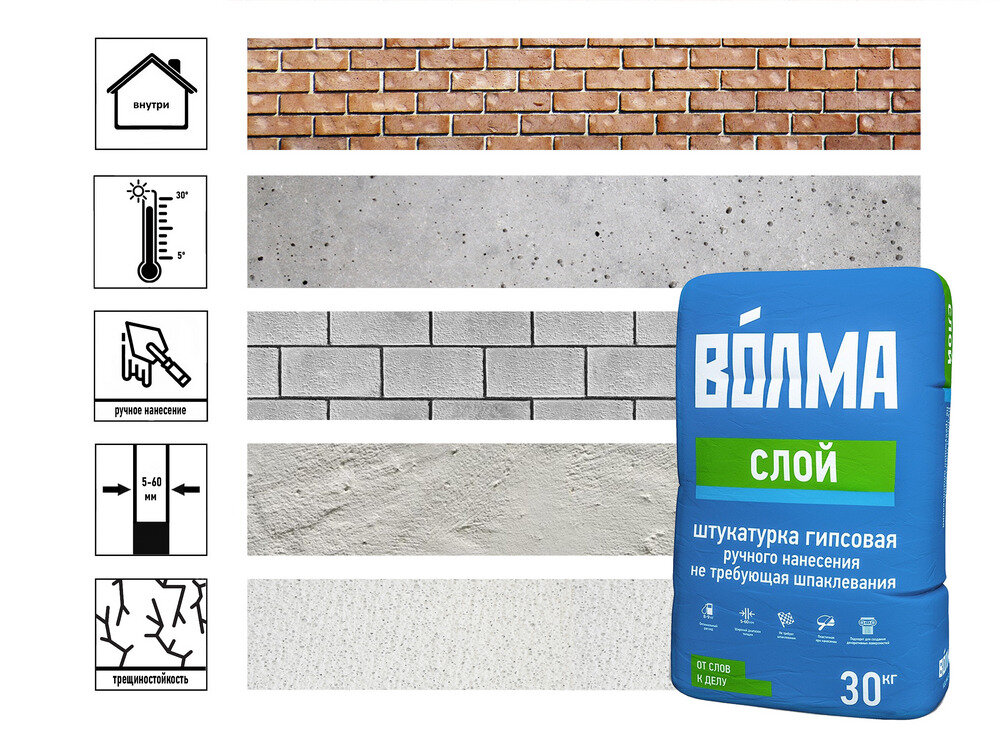 Волма Слой штукатурка гипсовая (30кг) / волма Слой штукатурка гипсовая для потолков и стен (30кг) интересное: