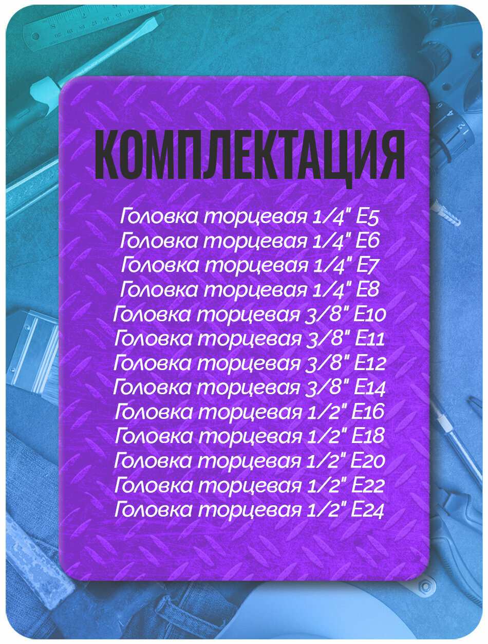 Набор головок 1/4", 3/8", 1/2" "звездочка" E4-E24 мм 14 предметов на подвесе TOPTUL (GAAR1402) интересное: