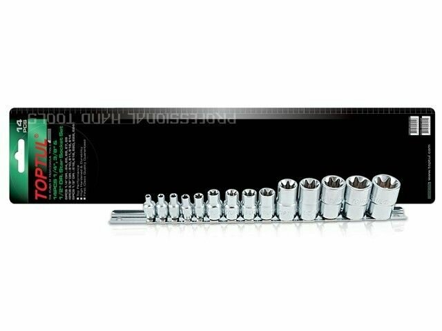 Набор головок 1/4", 3/8", 1/2" "звездочка" E4-E24мм 14предм. на подвесе TOPTUL (GAAR1402) (GAAR1402)