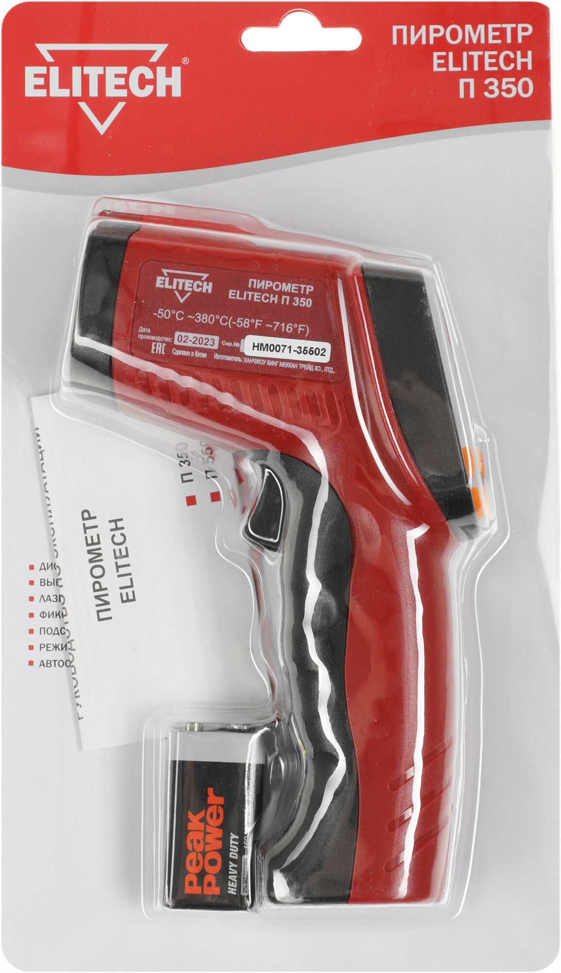 Пирометр ELITECH П 350 Пирометр,от-50 до+380град,9В батарея,лазер,ЖК дисплей,0.15кг,блистер