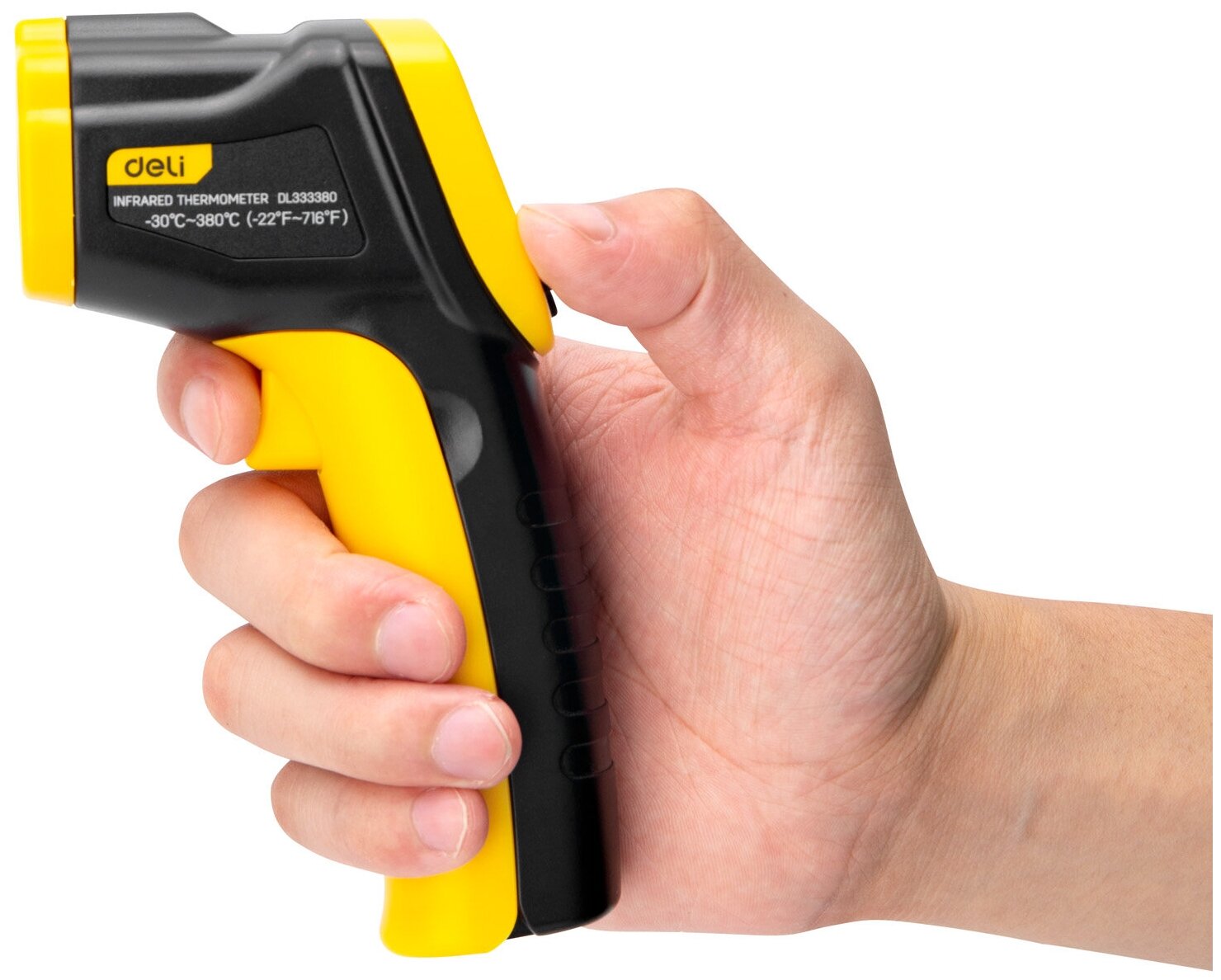 Бесконтактный инфракрасный пирометр (термометр) DELI DL333380 (диапазон изм. -30С до 380C или -22-716F, LCD дисплей, отклик 0.5с )