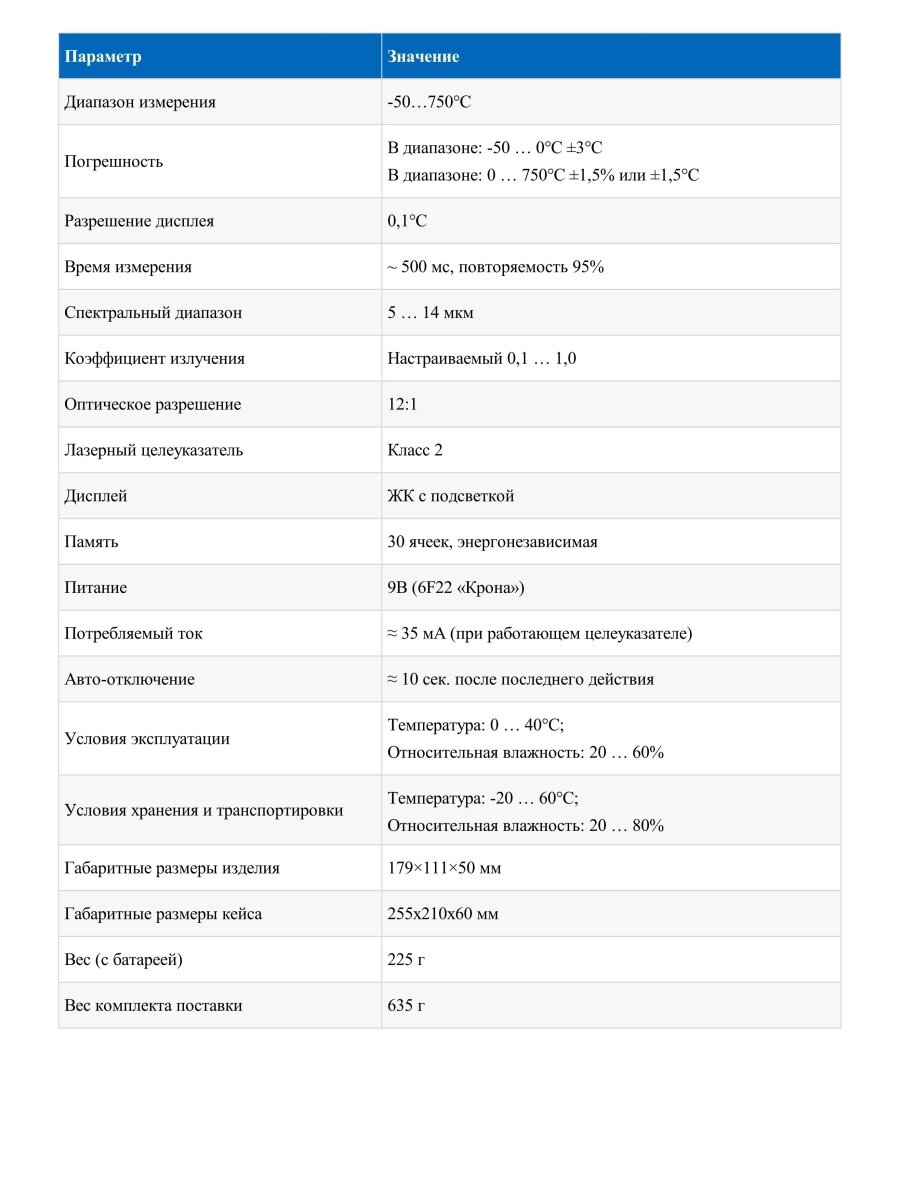| Тип | пирометр (бесконтактный термометр) |