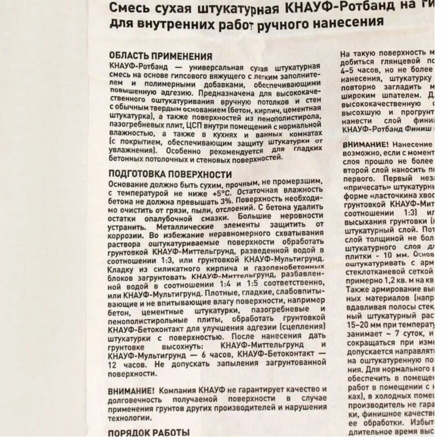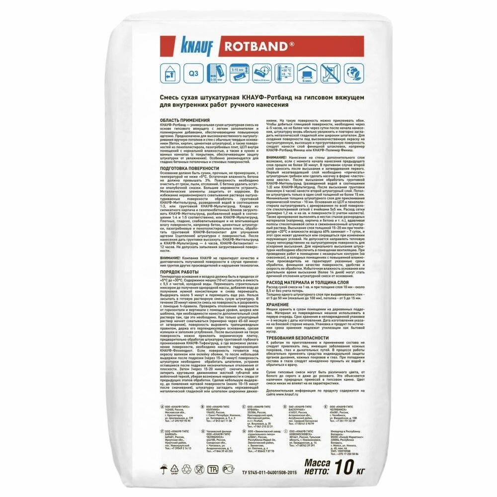 | Дополнительная информация | Штукатурка гипсовая Knauf Ротбанд 10 кг |