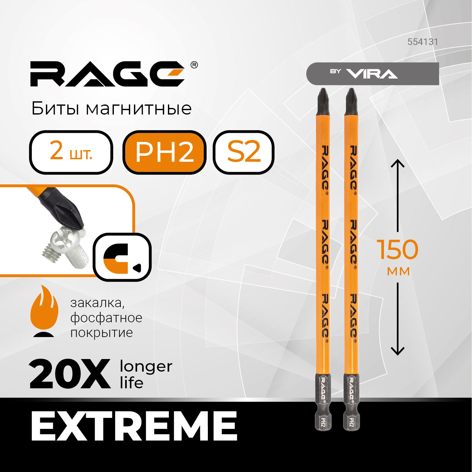Биты магнитные (2 шт; PH2x150 мм; S2) RAGE by VIRA 554131