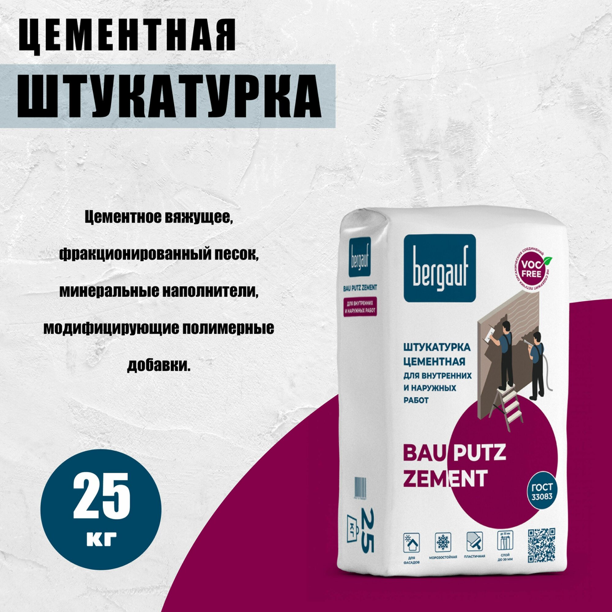 Бергауф Бау Путц Цемент штукатурка цементная (25кг) / BERGAUF Bau Putz Zement штукатурка цементная фасадная (25кг) интересное: