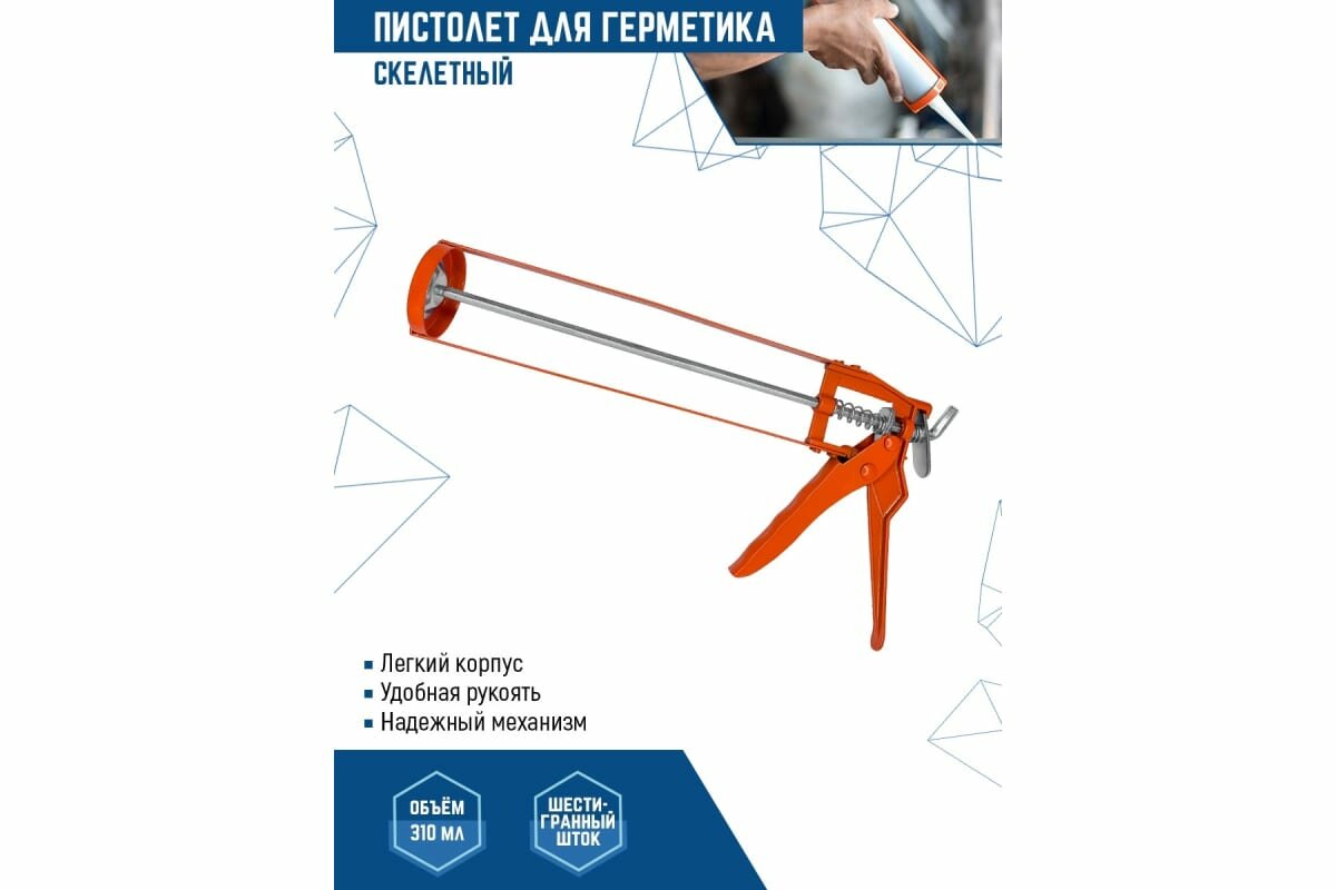 Пистолет для герметика тундра, скелетный, шестигранный шток, 225 мм