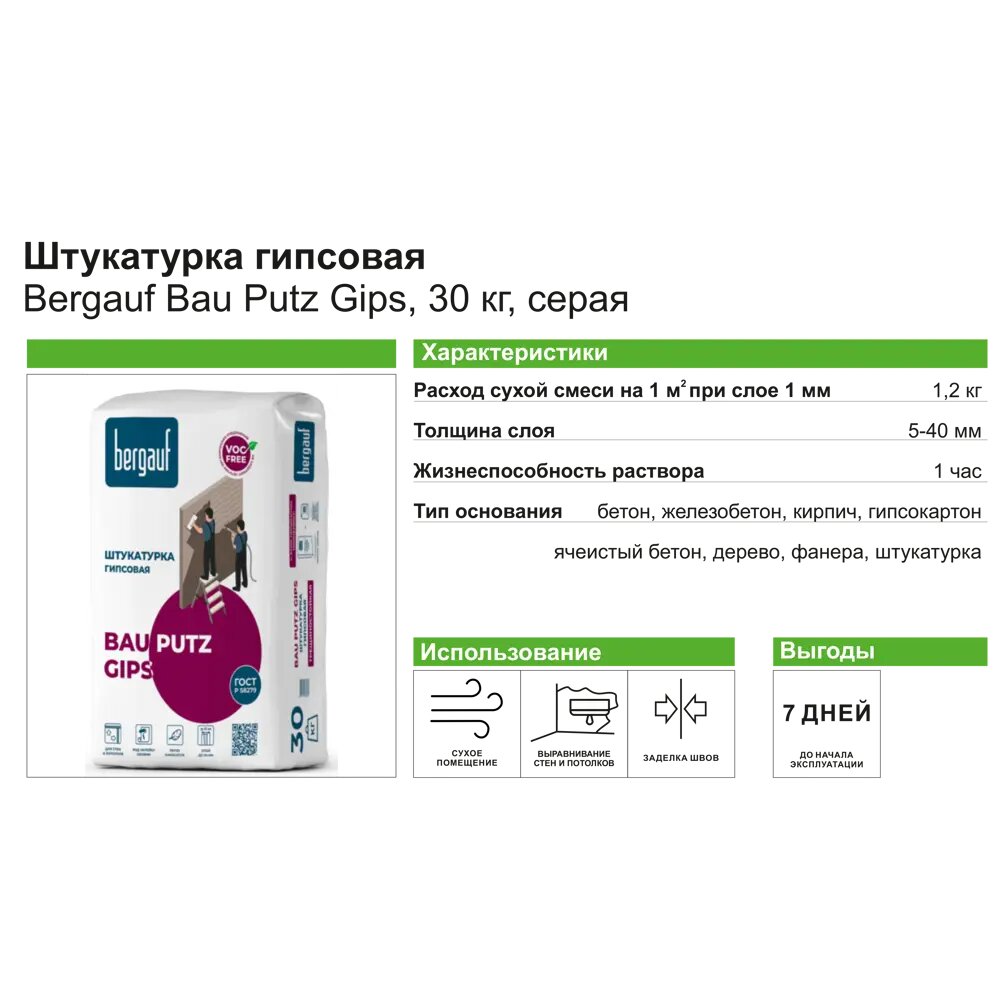 Штукатурка Bergauf Bau Putz Gips гипсовая, 30кг интересное: